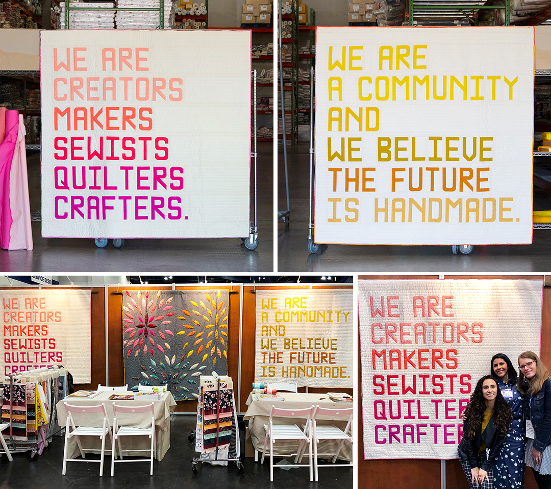 The Typecast Fast foundation paper pieced pattern debuted in the Art Gallery Fabrics at the International Quilt Market booth in October. Together, we developed and designed two Makers’ Manifesto quilts—a public declaration that all creators, makers, sewists, quilters, and crafters can get behind!