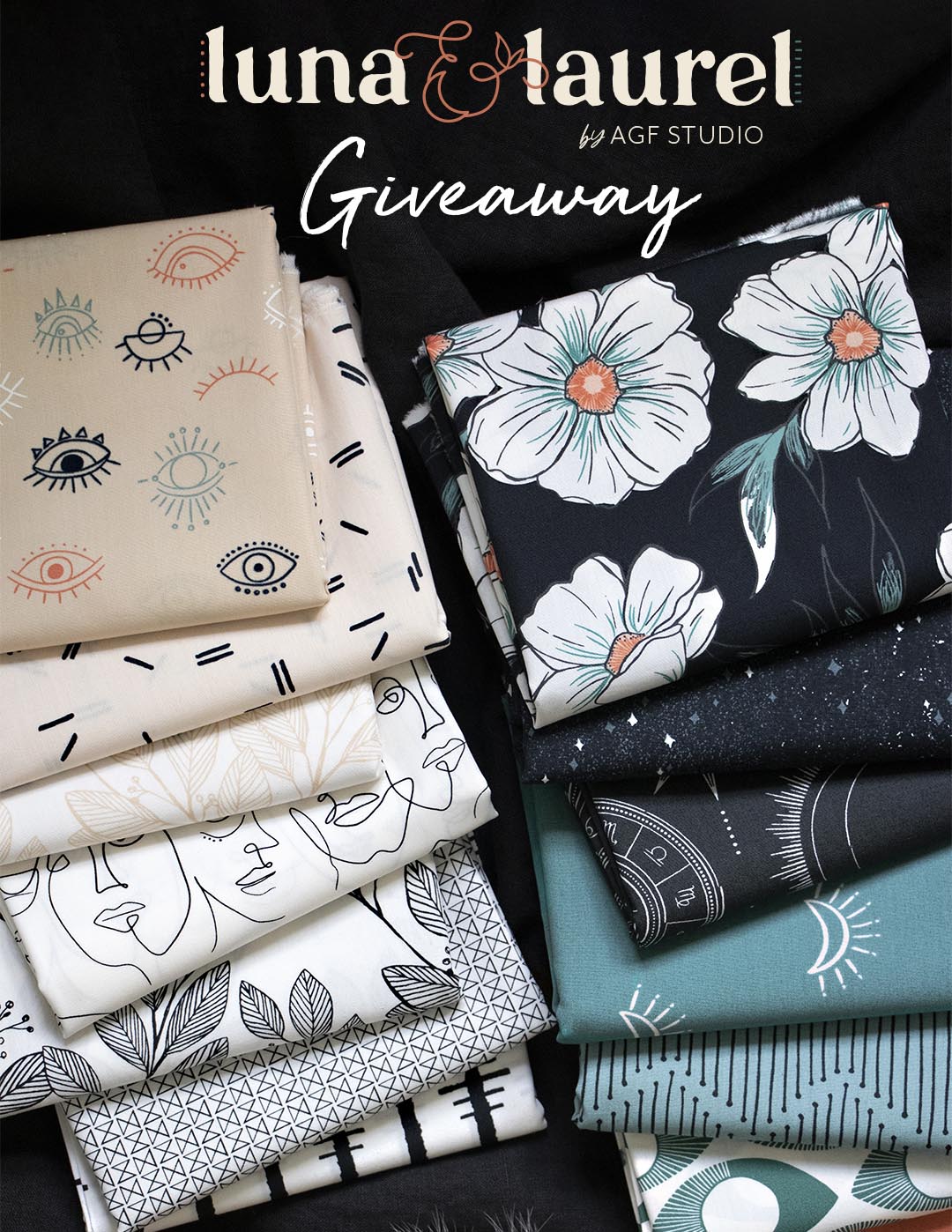 So, today I am more than happy to show you these pretty prints and all that I love about them! Its celestial details and bold florals are enriched with deep teals, mellow oranges, soft creams, and contrasting blacks that were meant to be sewn together for statement projects. Now with these prints in my hands, I couldn’t be any more excited about all the lovely projects people are about to make! So, don’t forget to share your projects and check out what others are making through the hashtag #AGFLunaAndLaurel.