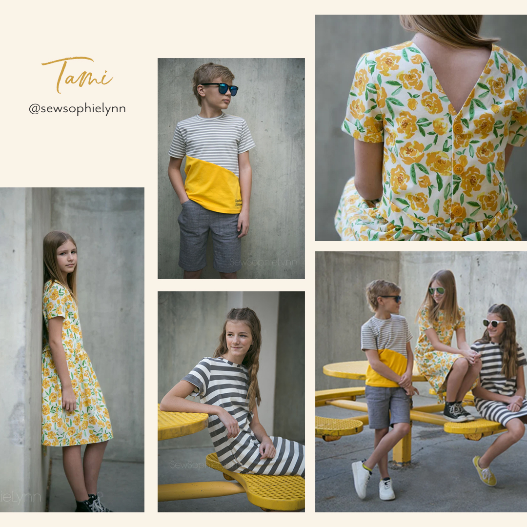 - A Lemon Tee in “Daffodil” knit solid print and “Striped Alike” knit print.