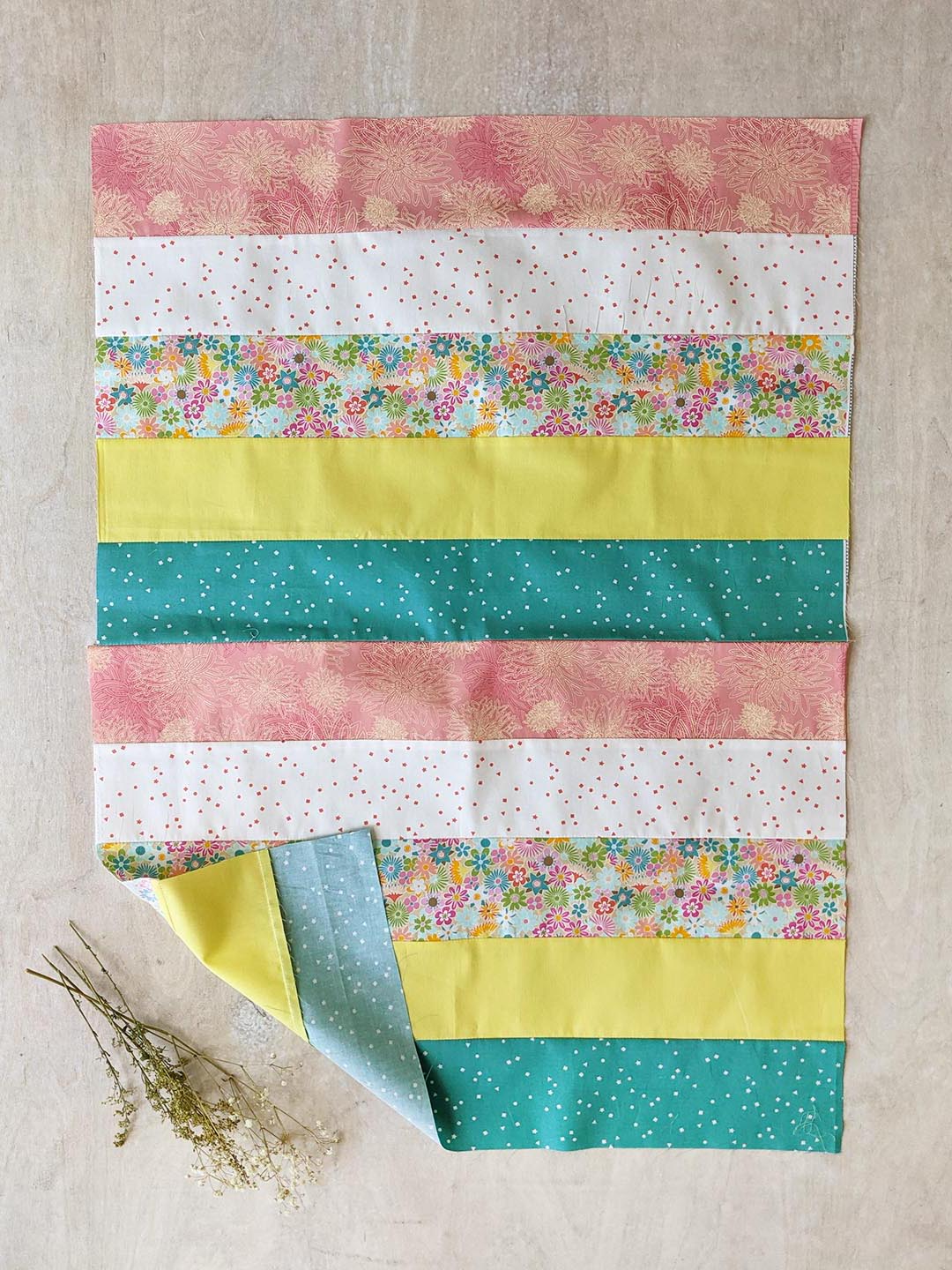 One of my favorite things to sew is strips of fabric because I find myself in a trance under my sewing machine, and at that point, I feel unstoppable. I'm sure when everyone is in the zone, you can relate too! Combing this love to strip piecing, I thought it would be a great idea to show all of you the Bargello Technique, which is made of strips of fabric sewn together to create the appearance of movement. I wanted to capture this technique with a small project so it is easier to digest, so what better than these awesome placemats!