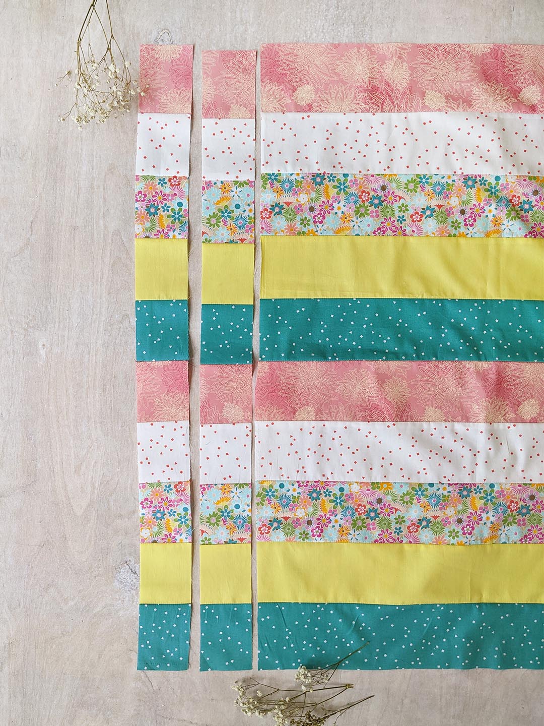 Four (4) 3  1/2’’ x WOF strip from Fabrics A, B, C, D, E
