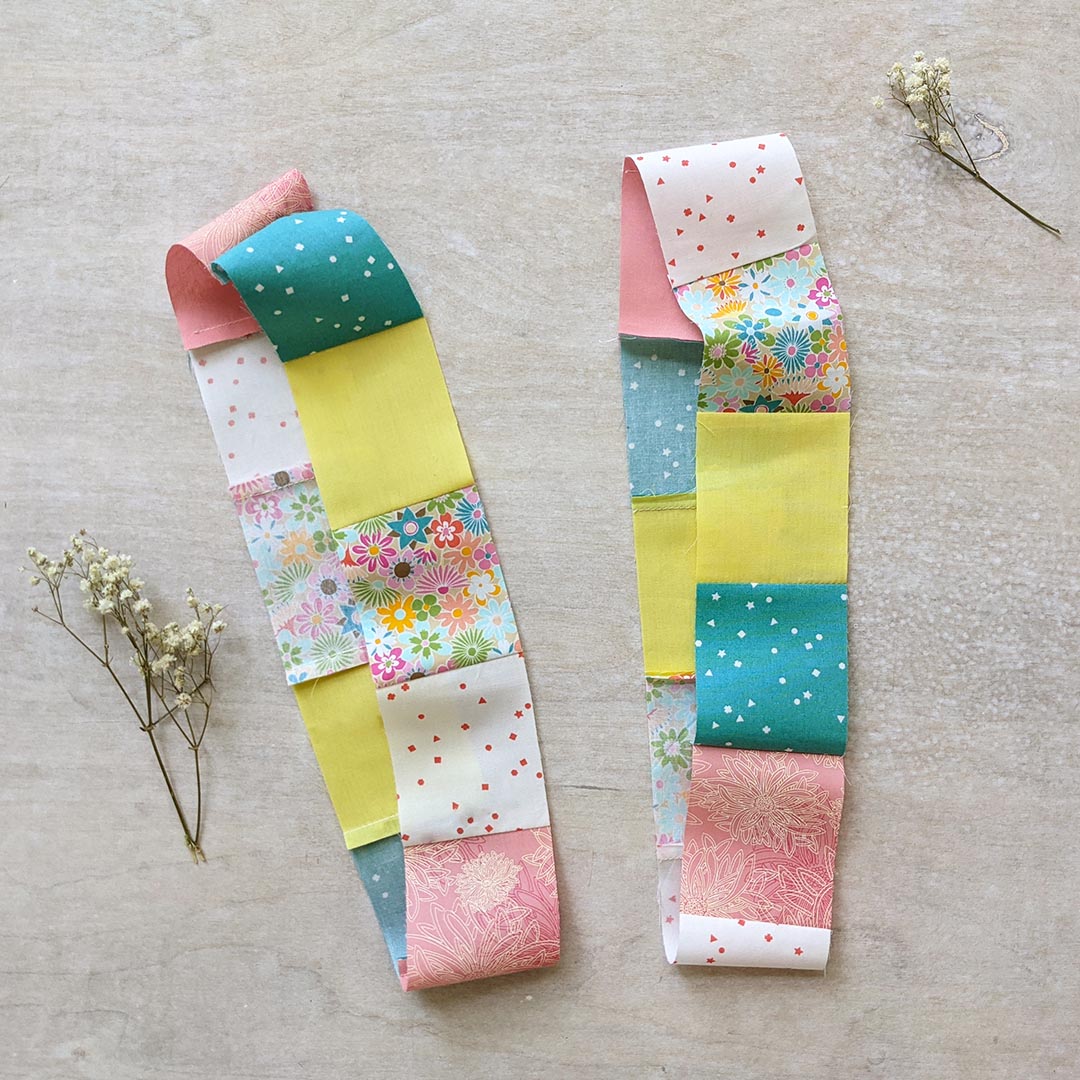 Unsew one seam from each tube to create a long strip, following the image below as your guide.