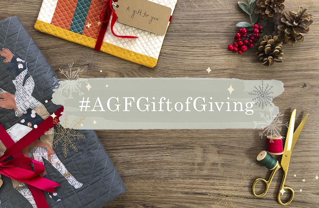 Starting today, I encourage you to use your healing hands to make something beautiful and share it with us using the hashtag #AGFGiftofGiving on all social media platforms! Share the joy of giving something handmade, and creating something with your own hands with fabrics and tools that you already may have. Time to dig through your fabric scraps, take out those UFOs, and finally transform them into something with a purpose. As you posting your projects will help spread the word, we also plan on sharing the love every week until the end of the year and sharing your posts.
