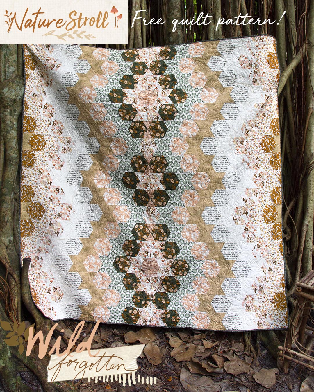 Bring these prints to life with our “Nature Stroll” free quilt pattern linked below that’s filled with hexagon shapes that can be easily sewed together by one simple template!