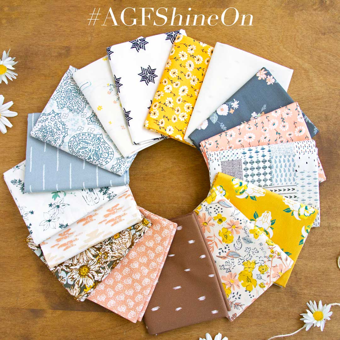 Sharon, as you all know is a talented designer, but she is also a very talented quilter! I highly recommend checking out her Instagram page because it’s always filled with tons of projects made by her and other makers that are truly inspiring. You can also check out the hashtag #AGFShineOn for more projects, and we encourage you to share your own too! We love seeing them and sharing the love.