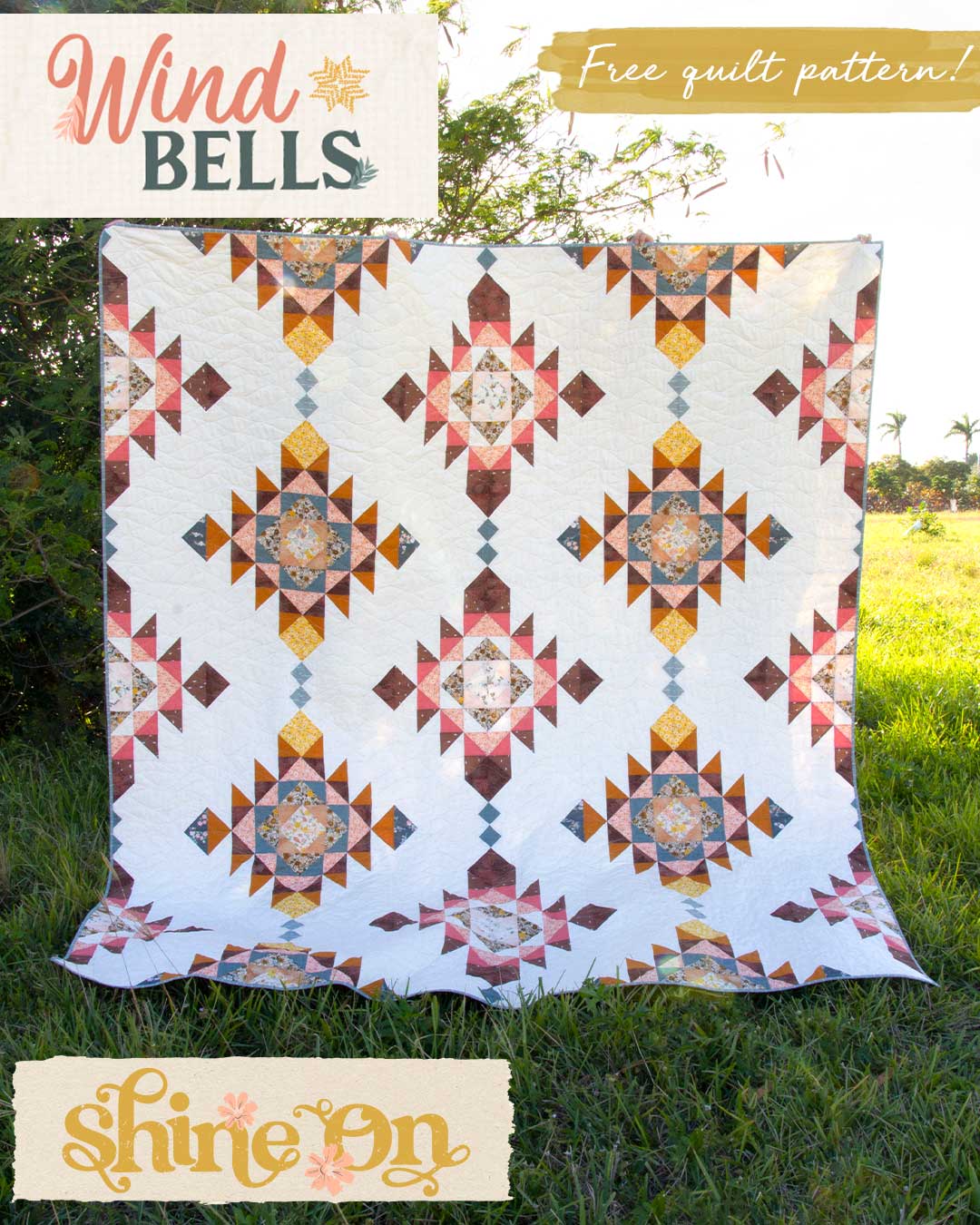 Recreate this 96’’ by 108’’ free quilt pattern beauty called “Wind Bells”!