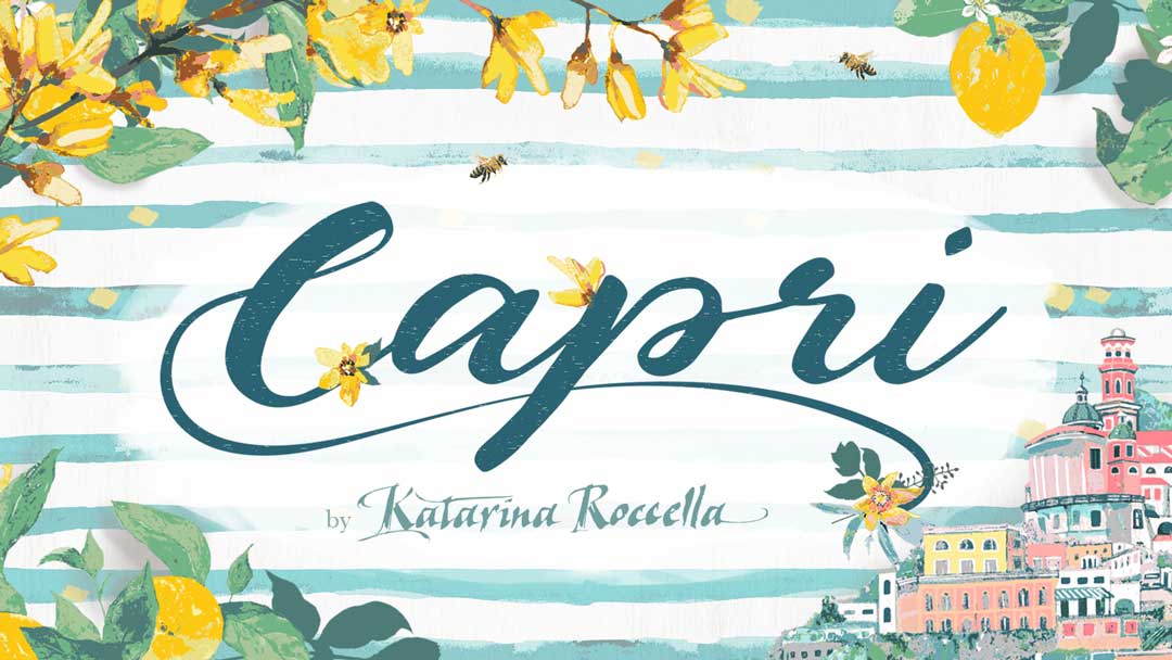 One of my favorite things about sewing is getting lost at the sound of my sewing machine! Sewing away, chain piecing, cutting fabric, and next thing you know many hours have passed, and I was able to escape to my happy place. That is the greatest part about this community, that we can all share this passion, and how we can relate to how happy it makes us! A lot of this joy starts with just choosing what fabrics speak to me, and as of recently, all I’ve been daydreaming about is going on a sunny vacation to the beach. Luckily for me, Katarina Roccella just released the perfect collection that will take me to my dream vacation, and it’s called CAPRI!