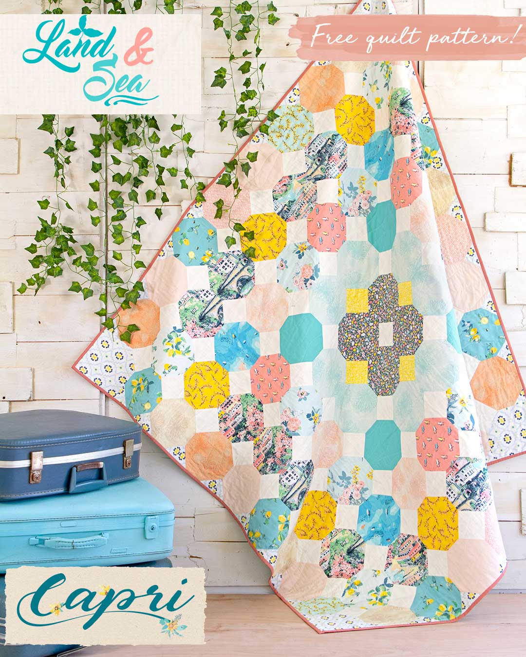 Let these prints shine with our 60" × 60" free quilt pattern called “Land & Sea”!
