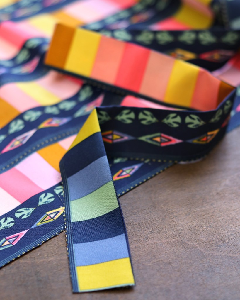 “Starlit Bound” 2.5 binding is by far my favorite binding fabric yet! Choose from a rainbow stripe design, birds in flight, and a multi color diamond design.