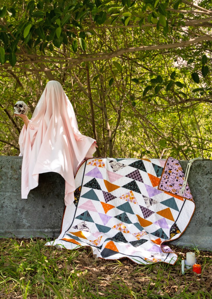Fabrics used in this quilt are from our latest Halloween collection by AGF Studio called Ghostly & Haunted. All you last min quilters can grab a bundle HERE!