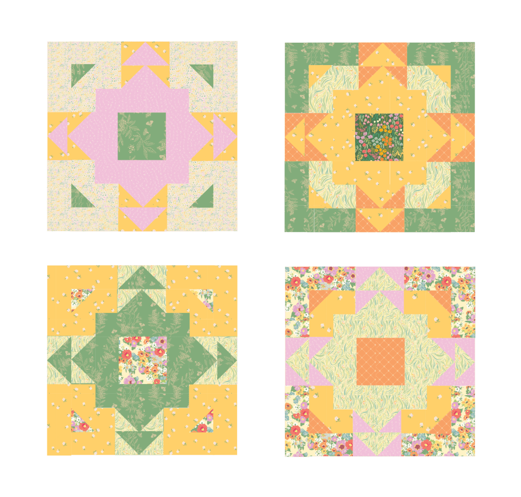 The “Illuminating Star” tablerunner is a perfect make to sew up now and have ready for the Spring season. It consists of 1 block sewn up 4 times in different Gardenista fabric pulls. Each block is an explosion of color and when sewed together will create the most eye-catching design. I added a 2 ½ border to add some width and to make the tablerunner come to life.