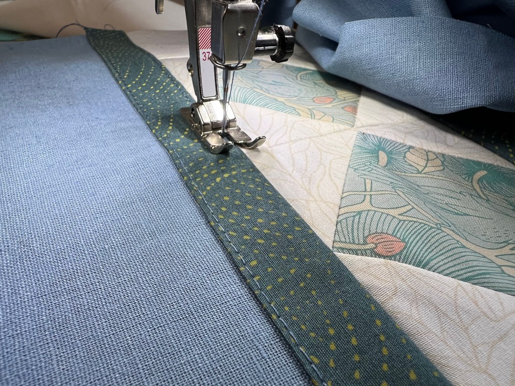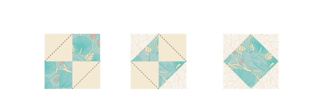 Three Kitchen towels constructed in different ways to inspire you to bring your patchwork and add your favorite fabric prints to your kitchen. I knew I had to use Katie O’Shea’s newest collection ‘Stillwater’ because of its relaxing zen vibes and the greens and blues in this collection are the perfect shades to display all year round.