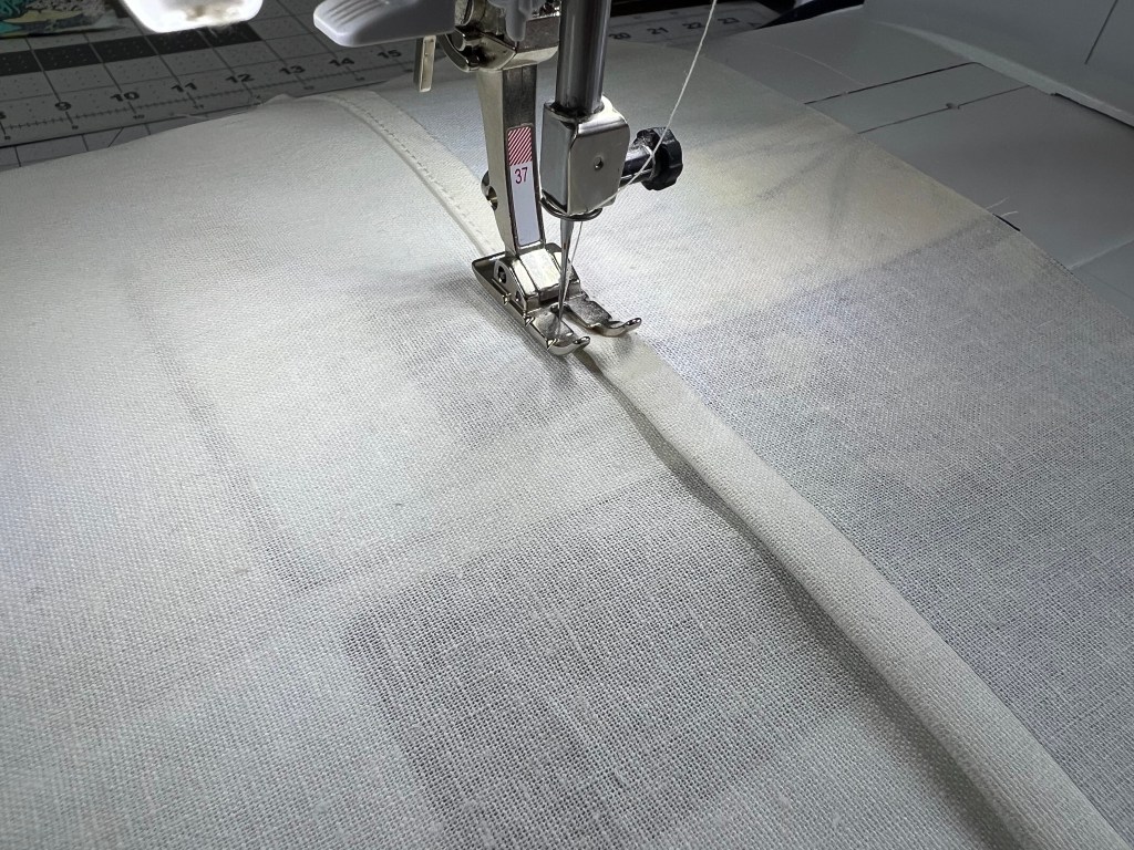 We are going to be using a french seam to incase our seams. Press seams and incase raw edges. Topstitch as close to the edge as possible.